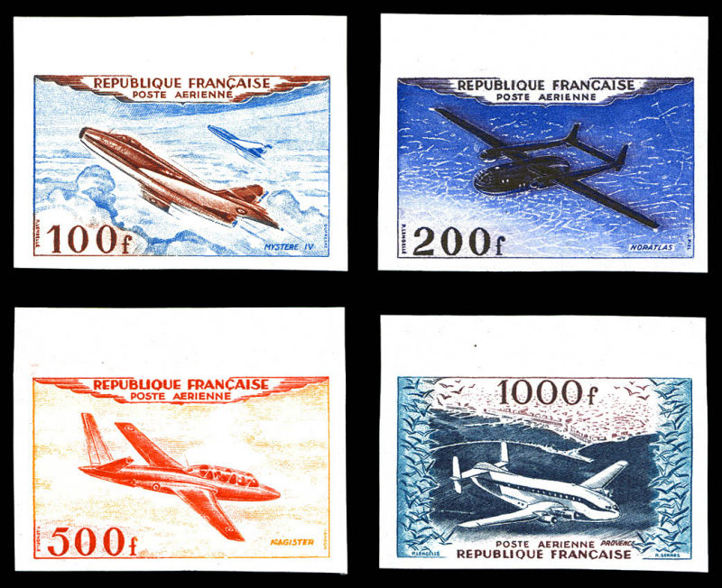 Blocs Spéciaux: Série Prototypes: Mystère IV, Noratlas, Fouga Magister et Provence, tirage 18 exemplaires. SUP. R.R. (certificat) Qualité: ** (Image)