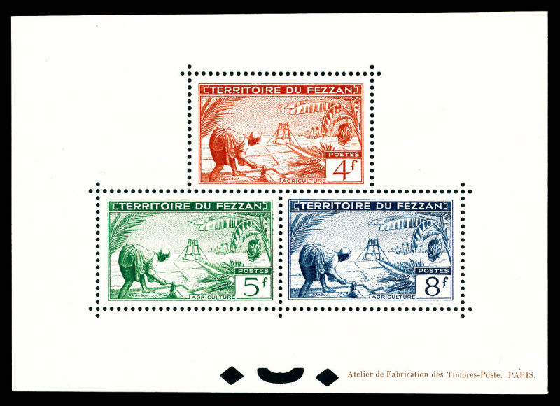 4418 imageN°56/58, FEZZAN BLOC SPECIAUX, les 3 valeurs. SUP. R.R. (certificat) Qualité: ** (Image)