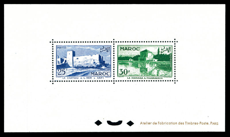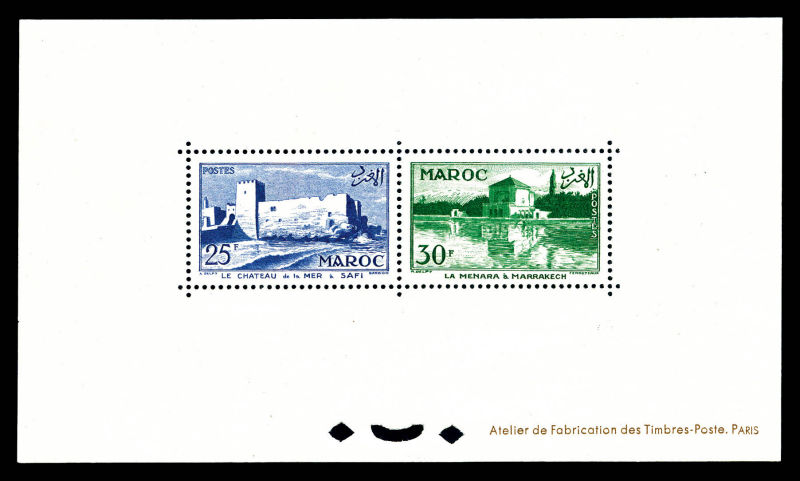 MAROC. BLOC SPECIAUX, Paire Château de la mer et La Menara à Marrakech. SUP. R. (certificat) Qualité: ** (Image)