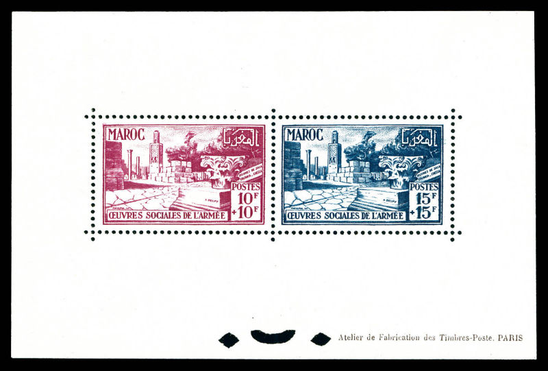MAROC. BLOC SPECIAUX PA, Paire Oeuvres sociale de l'armée. SUP. R. (certificat) Qualité: ** (Image)