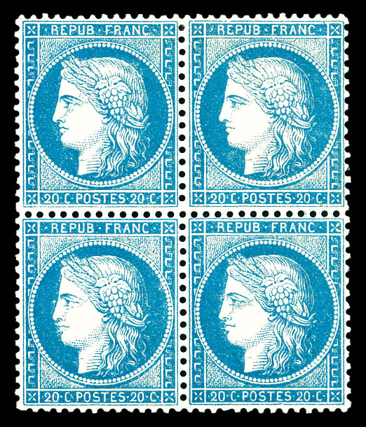 456 imageN°37f, 20c bleu, reimpression de Granet en bloc de quatre, fraîcheur postale. SUPERBE (certificat) Qualité: ** (Image)