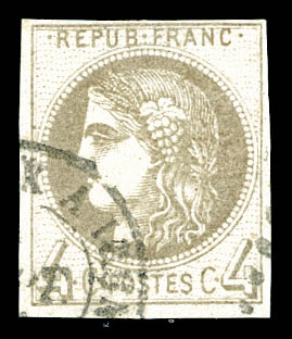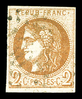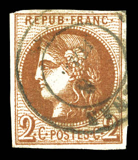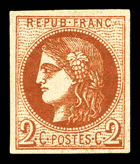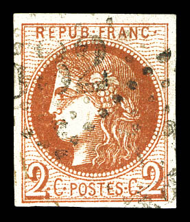 rouge-brique foncé, quatre belles marges, superbe nuance. TTB. R.R. (signé Calves/certificat) Qualité: * Cote: 2750 euros (Image)