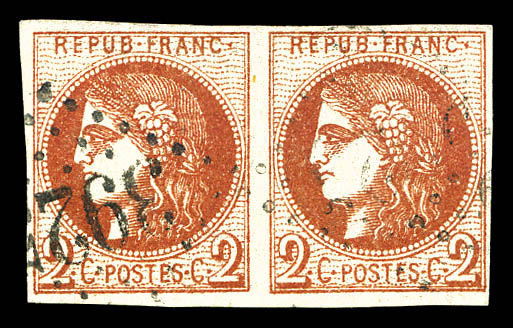 foncé en paire obl GC. TTB (certificat) Qualité: Oblitéré Cote: 3400 euros (Image)