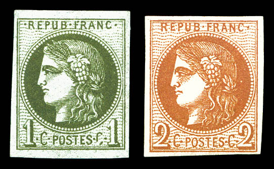1c olive foncé Rep 3 et 2c brun-rouge Rep 2, les 2 exemplaires TB (certificat) Qualité: * Cote: 610 euros (Image)