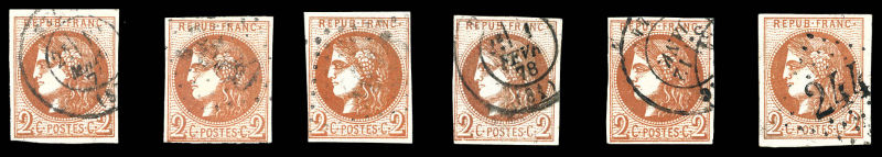Bordeaux: Ensemble de 19 exemplaires neufs et obl dont nuances et oblitérations, quelques timbres signés Calves et Brun. belle qualité d'ensemble Qualité: N&Obl