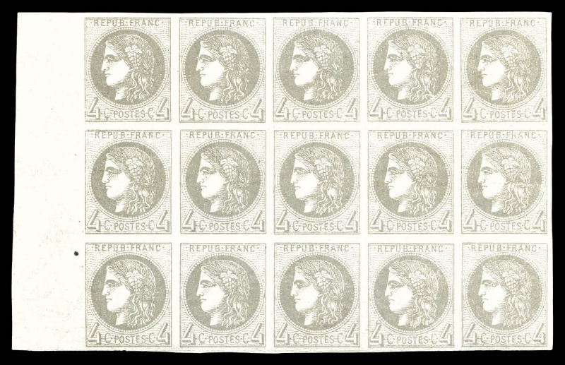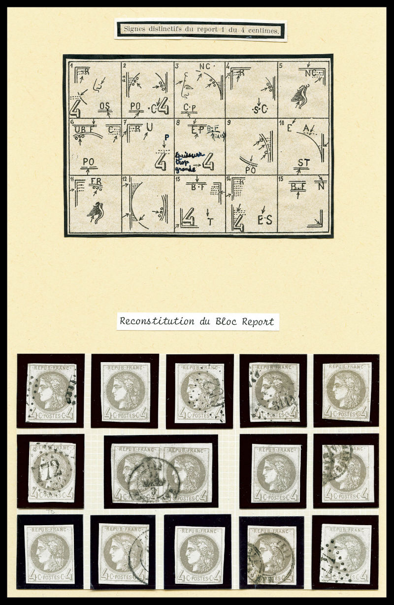 Report 1, Exceptionnelle reconstitution du bloc report de 15 exemplaires dont 5 valeurs neuves et 10 oblitérées, belle qualité générale. SUPERBE. R.R.R. (certificat) Qualité: Oblitéré Cote: 100000 euros (Image) (image2)