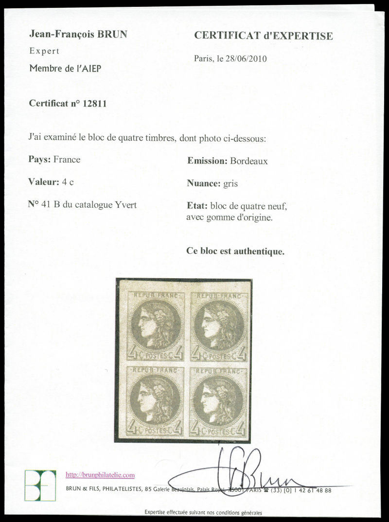 Report 1 en BLOC DE 4, PROBABLEMENT LE PLUS BEL EXEMPLAIRE CONNU, GRANDE RARETÉ, SUPERBE (certificats) Qualité: (*) Cote: 30000 euros (Image) (image2)