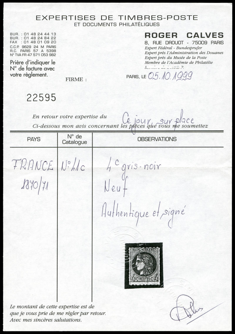 gris-foncé, bord de feuille, TTB (signé Brun/certificat) Qualité: * Cote: 750 euros (Image)