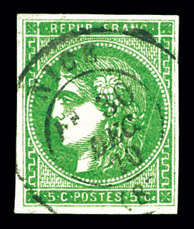 Vert-jaune foncé, belles marges et très jolie nuance. TTB (signé Brun) Qualité: Oblitéré Cote: 300 euros (Image)