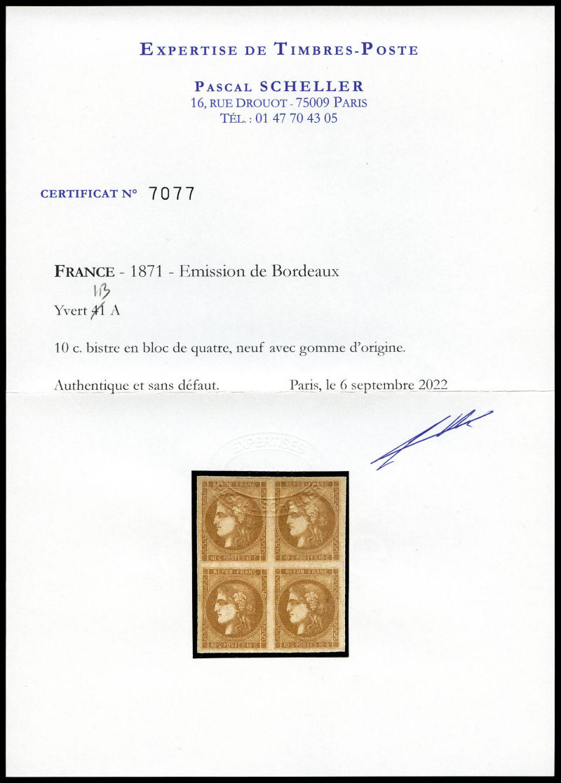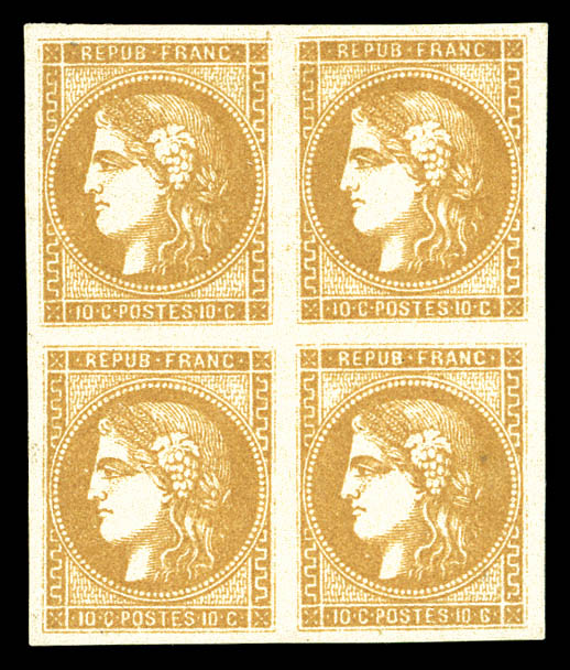bistre en bloc de quatre, très belles marges et grande fraicheur. SUPERBE (signé Brun/certificats) Qualité: * Cote: 7000 euros (Image) (image2)