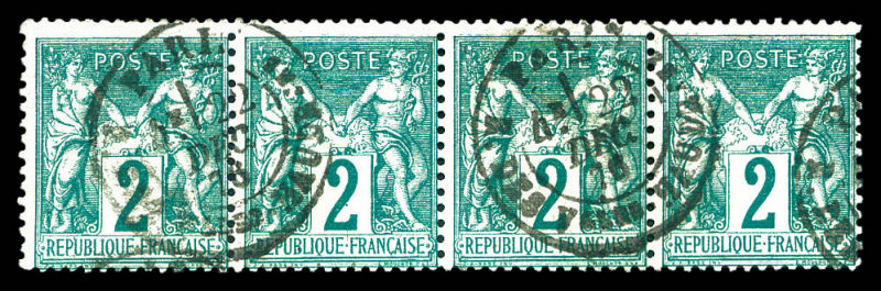 type I, bande de 4 exemplaires, jolie pièce. TB (certificat) Qualité: Oblitéré Cote: 1550 euros (Image)