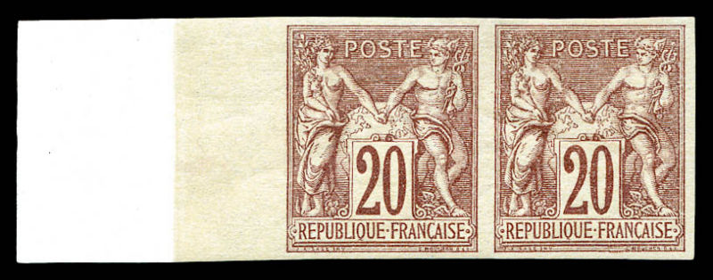 brun-lilas type I non dentelé en paire (1ex*), bord de feuille intégral avec fond de sûreté, fraîcheur postale. SUP (signé Brun/certificats) Qualité: ** (Image)