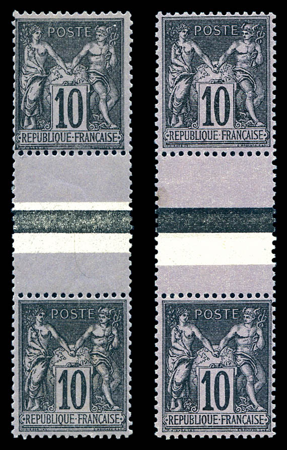 862 imageN°103b, 10c noir sur lilas: 2 paires type I tenant à type II en blocs de quatre avec interpanneau, fraîcheur postale. SUP (signé/certificat) Qualité: ** (Image)