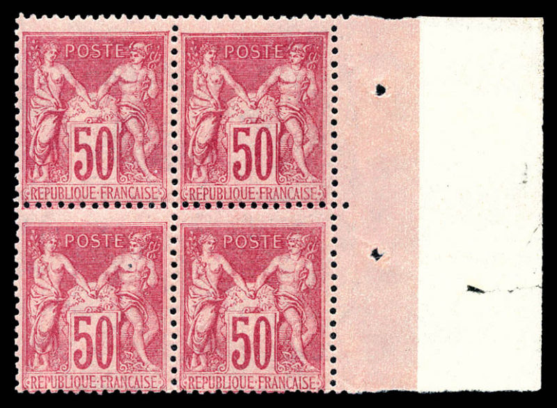 864 imageN°104, 50c rose type I, bloc de quatre bdf latéral, très frais. SUP (certificat) Qualité: ** (Image)