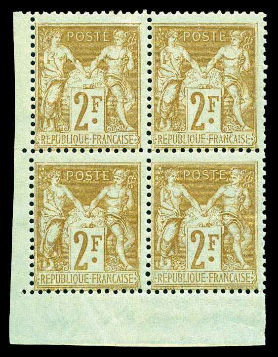 866 imageN°105, 2F bistre sur azuré en bloc de 4 cdf. SUP (certificat) Qualité: ** (Image)