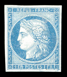 877 imageCérès, 1f bleu. TTB (certificat) Qualité: (*) Cote: 850 euros (Image)