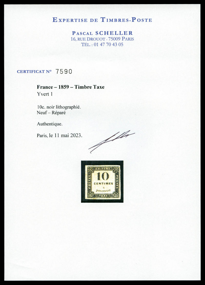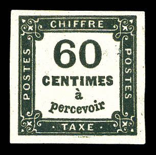 60c noir, très jolie pièce. TRES RARE. SUP (signé Scheller/certificat) Qualité: (*) Cote: 4000 euros (Image) (image2)