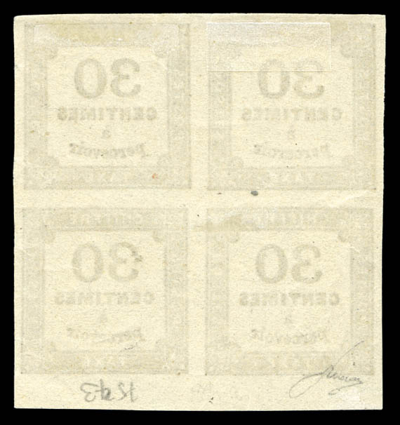 lithographié, bloc de 25 exemplaires bord de feuille avec cachet de contrôle T.P en bleu. SUPERBE. R. (certificat) Qualité: ** (Image)