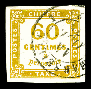 jaune-bistre obl càd de MARSEILLE le 14 oct 1874, timbre superbe avec quatre marges équlibrées. SUP (signé Brun/certificat) Qualité: Oblitéré Cote: 1600 euros