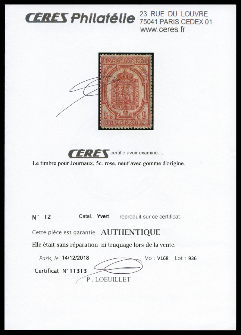 945 imageN°12, 5c rose, très frais. TB. R.R. (signé Scheller/Robineau/certificats) Qualité: * Cote: 3000 euros (Image) (image2) (All Images)