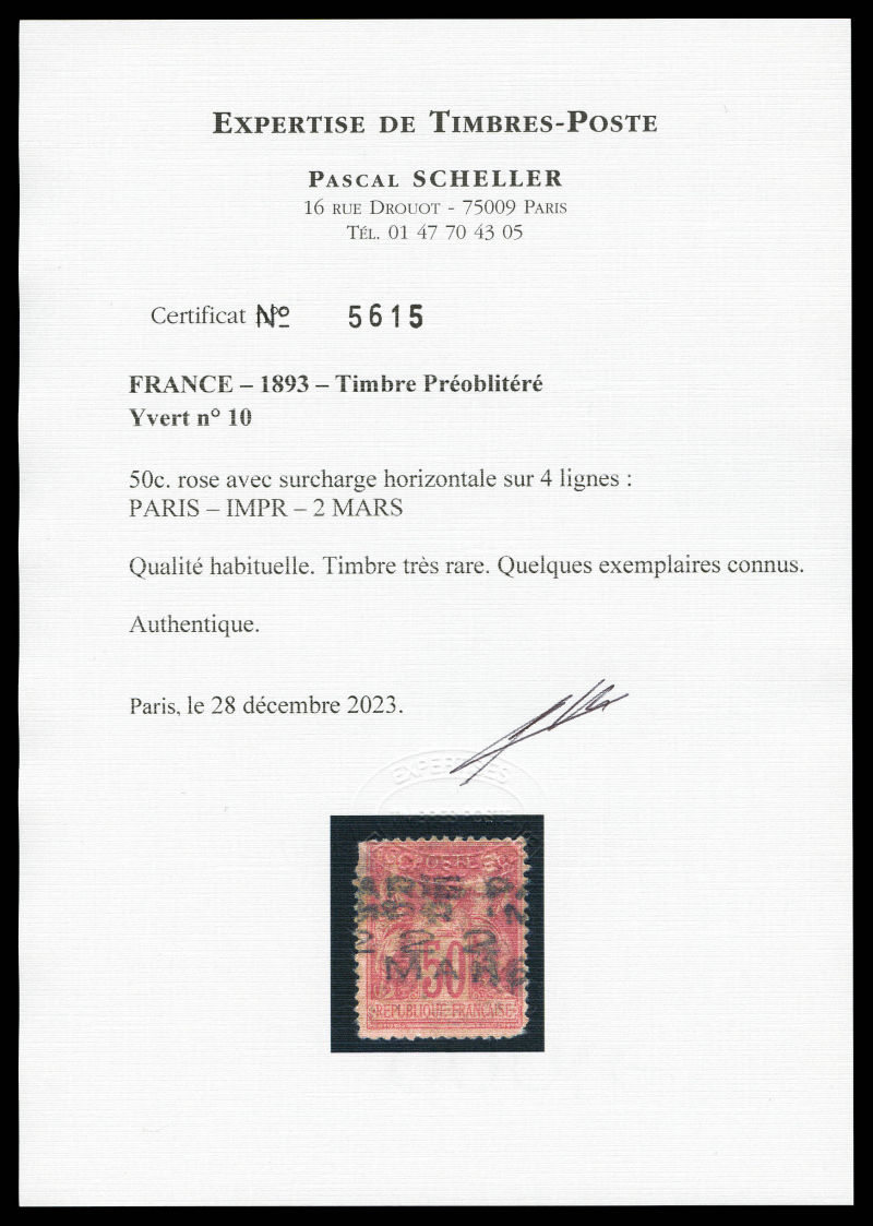 954 imageN°10a, 50c rose-foncé surchargé 4 lignes horizontales du 2 mars. Exceptionnel exemplaire d'un des timbres les plus rares de France. SUPERBE. R.R.R. (signé Scheller/certificats) Qualité: (*) (Image) (image2) (All Images)