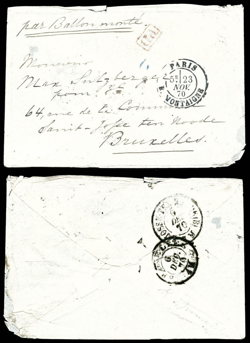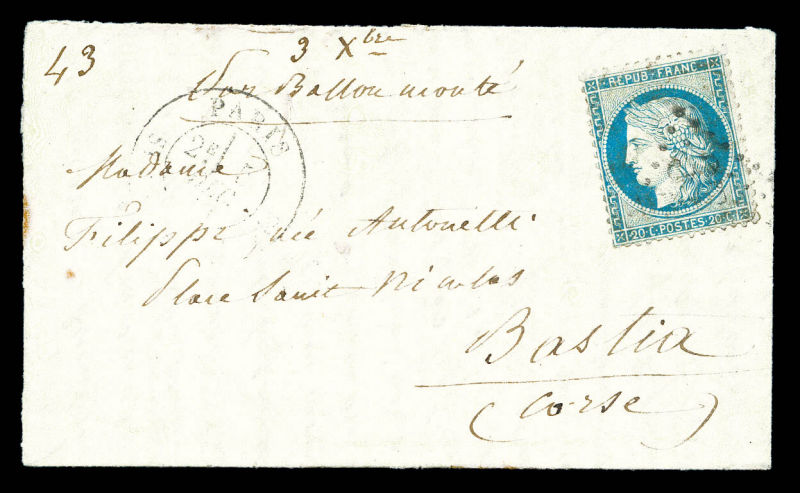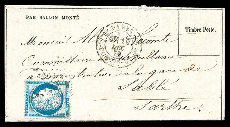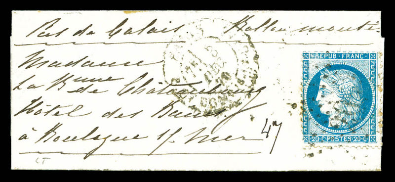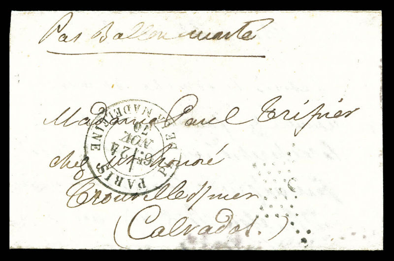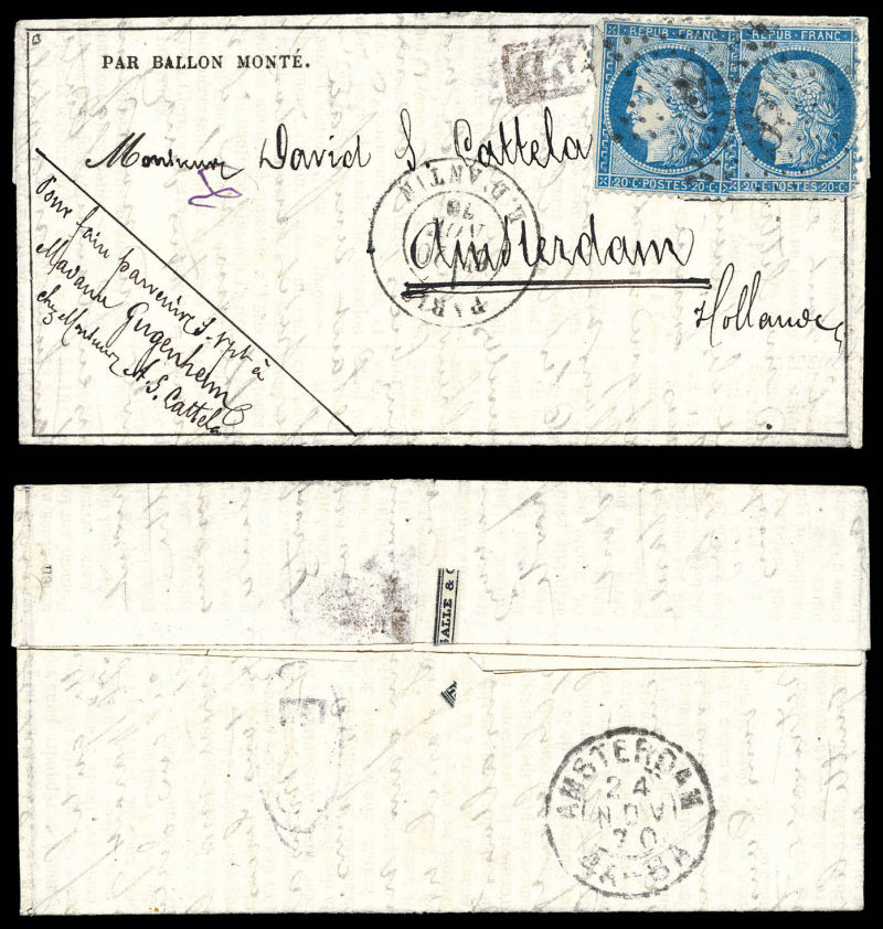 20c Siège, càd de Paris le 3 dec 70 (7ème levée) à destination de Boulogne sur Mer, arrivée le 11 dec 70. TTB (certificat) Qualité: Oblitéré (Image) (image2)