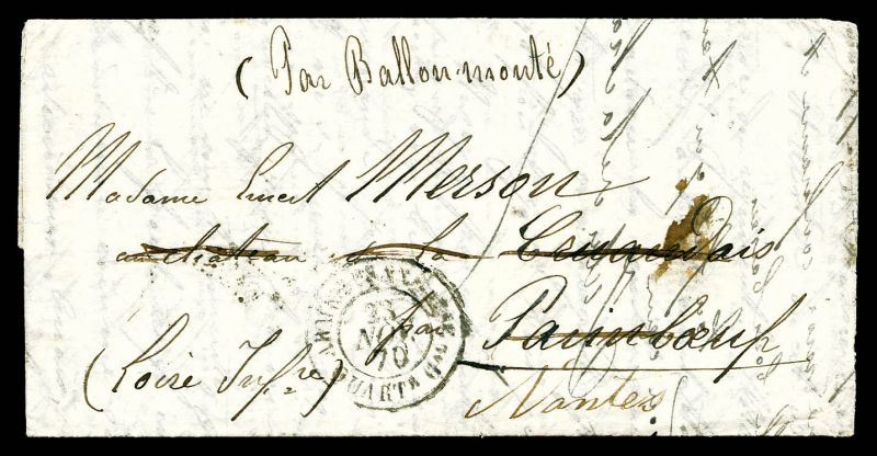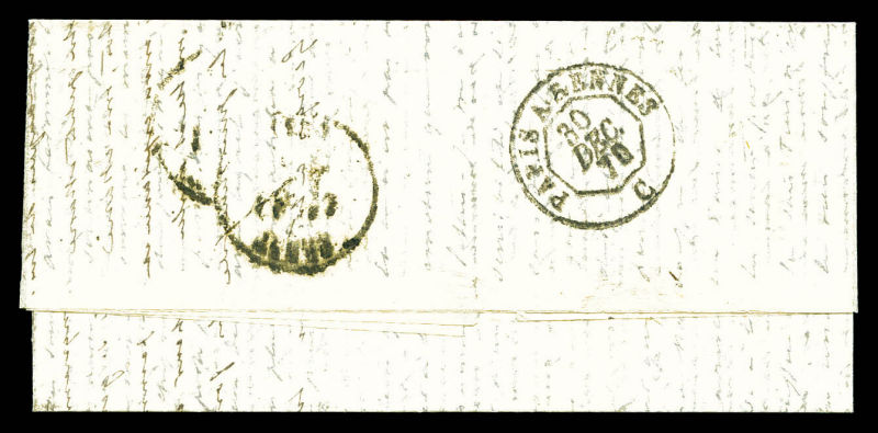 (possible), timbre tombé par immersion càd ARMEE FRANCAISE QUARTr Gal. Lm du Parc de Neuilly pour Paimboeuf et réexpédiée à Nantes. Au verso càd d'arrivée 23 et 24 dec 1870. TB Qualité: Oblitéré (Image) (image2)
