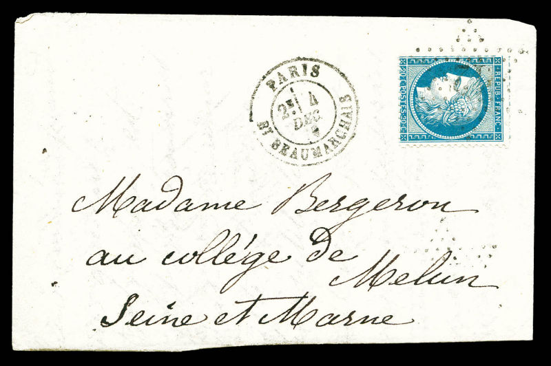 étoile '12' + càd PARIS BEAUMARCHAIS sur lettre du 4 dec 70 pour MELUN, territoire occupé. TTB Qualité: Oblitéré (Image)