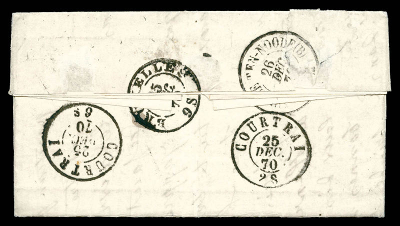Gazette des Absents N°17, 30c Lauré obl étoile '19' +càd du 17 dec 1870 pour Courtrai puis réexpédiée à Bruxelles, au verso càd d'arrivée le 26 dec. SUP (certificat) Qualité: Oblitéré (Image) (image2)