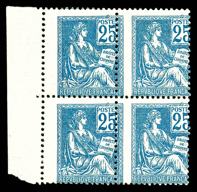 Merson: centre très déplacé en bloc de quatre bord de feuille. très bon centrage. SUPERBE. R. (certificat) Qualité: ** Cote: 6480 euros (Image)