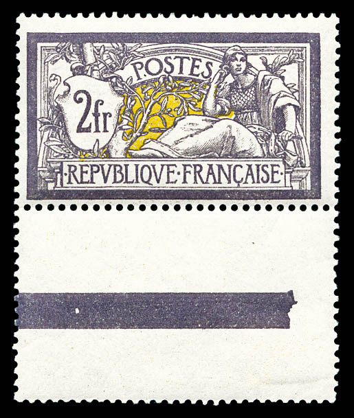 Merson, 2F violet et jaune, bas de feuille, frais. SUP (certificat) Qualité: ** Cote: 3300 euros (Image)
