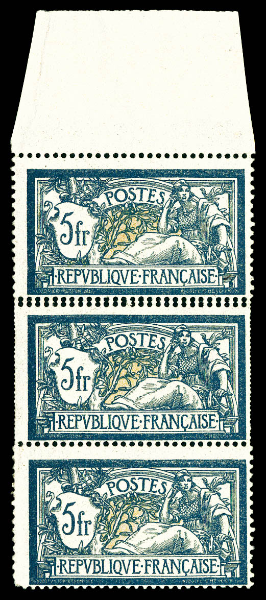 Merson. Double piquage sur deux exemplaires dans une bande de trois verticale bdf. SUP (certificat) Qualité: ** (Image)