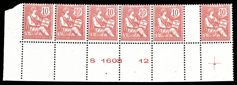 rose, bande de 6 bas de feuille avec numéro et croix de repère, TB (certificat) Qualité: ** Cote: 1440 euros (Image)