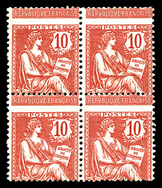 Mouchon retouché: grand piquage à cheval en bloc de quatre (2ex*). SUP. R. (certificat) Qualité: ** (Image)
