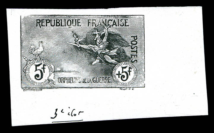 Orphelins, 5F +5F: épreuve non dentelée en noir avec coq sur la faciale, coin de feuille, SUPERBE et RARE (certificat) Qualité: (*) Cote: 4000 euros (Image)