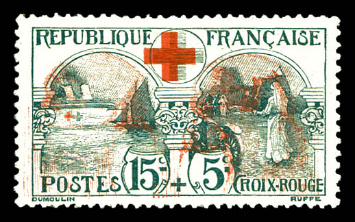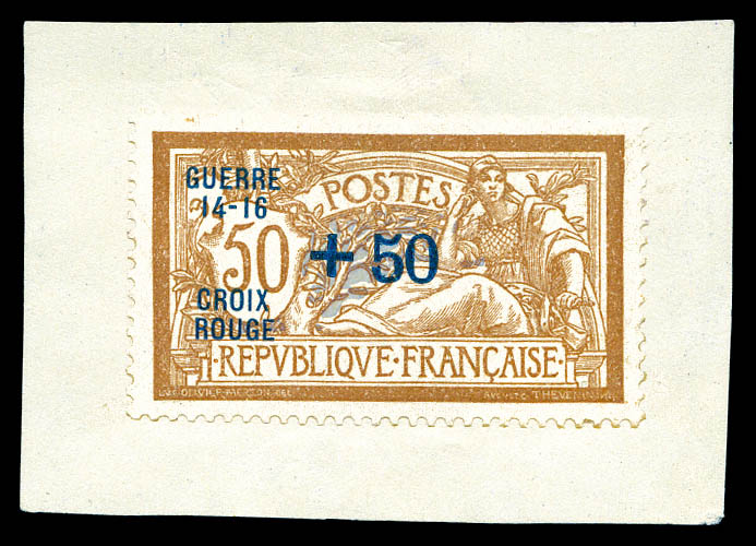 Non émis: Merson 50c +50 surchargé 'GUERRE 14-16 CROIX ROUGE' en bleu sur petit feuillet. SUP. R. (certificat) Qualité: (*) Cote: 1750 euros (Image)