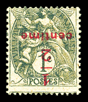 sur 1c ardoise papier GC: SURCHARGE RENVERSEE, SUPERBE (signé Brun/certificat) Qualité: ** Cote: 2500 euros (Image)