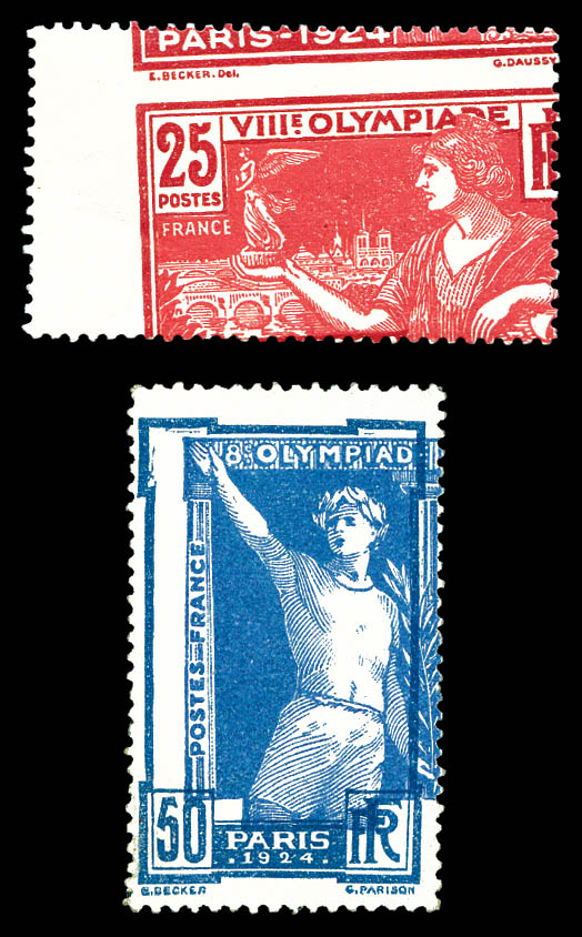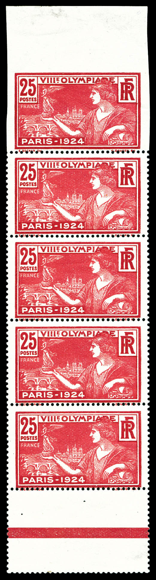 Jeux Olympiques de Paris 1924: non dentelé tenant à dentelés en bande de 5 exemplaires bord de feuille. SUPERBE. R.R. (certificat) Qualité: ** Cote: 6750 euros