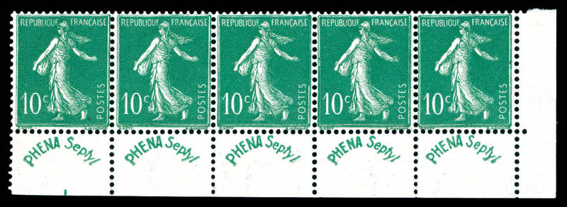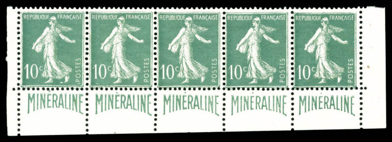 Minéraline, 10c vert, bande de 5 exemplaires. TTB (certificat) Qualité: (*) Cote: 2500 euros (Image)