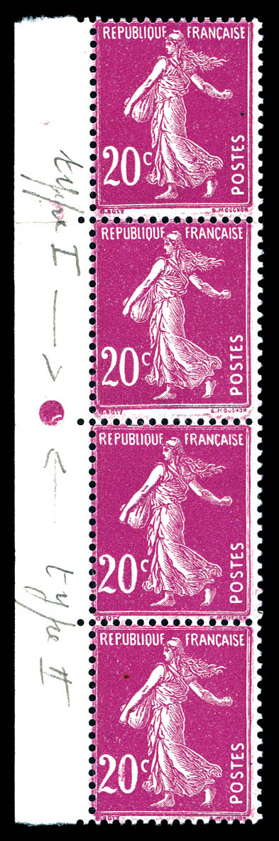 Semeuse: type III et V se tenant verticalement en bande de 4 bdf. TB Qualité: ** Cote: 600 euros (Image)