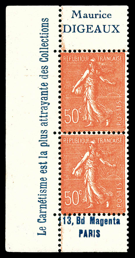 MAURICE DIGEAUX, paire verticale coin de carnet. TTB Qualité: ** Cote: 435 euros (Image)