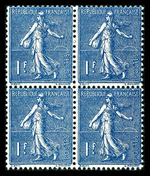 de Paris, centre déplacé en bloc de quatre (2ex*). TTB (certificat) Qualité: ** Cote: 1520 euros (Image)