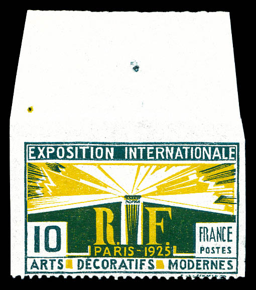 Art décoratifs, non dentelé sur trois cotés, haut de feuille, froissure de gomme. TTB. R.R.R. (certificat) Qualité: ** Cote: 3600 euros (Image)