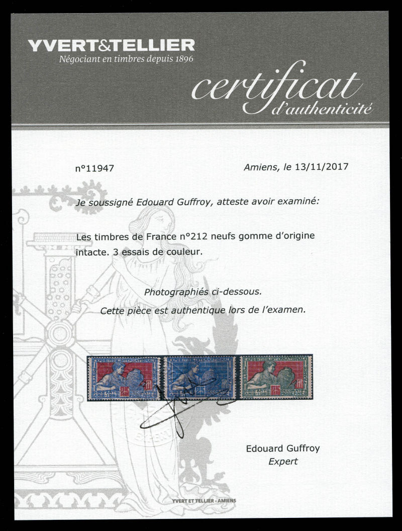 Merson, les 3 valeurs TTB (certificat) Qualité: ** Cote: 1060 euros (Image)
