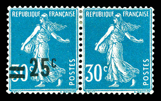 sur 30c bleu tenant à non surchargé, très bon centrage. SUP. R.R. (certificat) Qualité: * Cote: 1250 euros (Image) (image2)