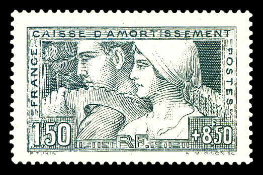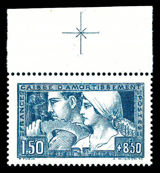 Travail, Etat IV en case 3, bdf avec croix de repère (gomme marbrée d'origine). TB (certificat) Qualité: ** Cote: 900 euros (Image)