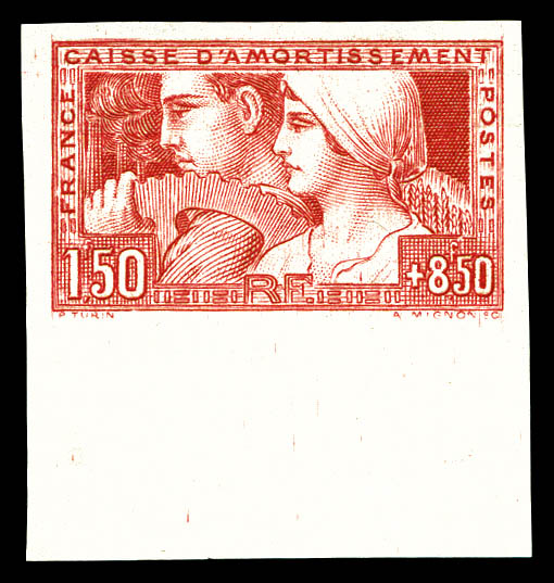 Travail: 1f50 +8f50 ROUGE SUR PAPIER CARTON, tirage du service intérieur, très jolie pièce, R.R.R. (certificat) Qualité: (*) (Image)