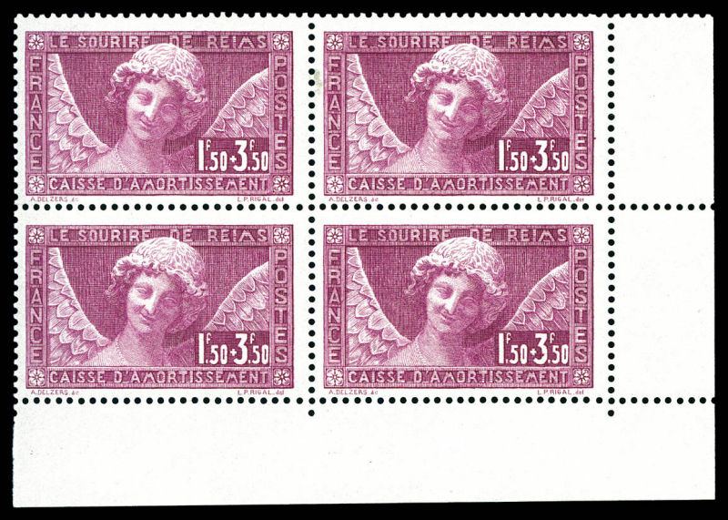 Sourire de Reims, bloc de 4 cdf. TB Qualité: ** Cote: 640 euros (Image)