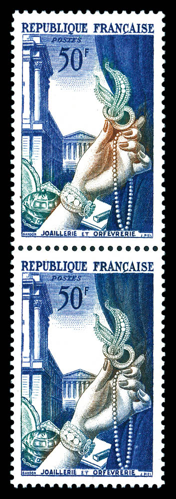 (N°Maury), Non émis: Joaillerie 50F carmin-brun non dentelé en bloc de quatre coin de feuille, R.R.R (certificat) Qualité: ** Cote: 3400 euros (Image)