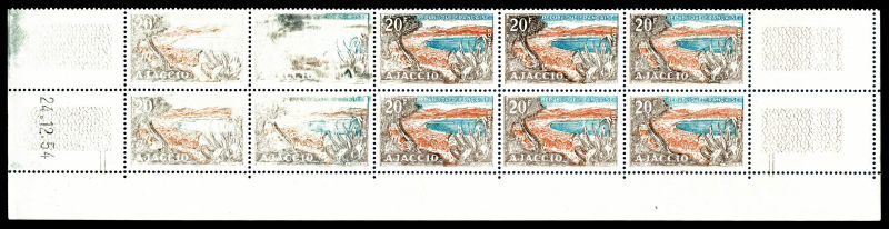 Ajaccio, impression detruite sur bloc de 10 exemplaires coin de feuille daté, spectaculaire et superbe (certificat) Qualité: ** (Image)